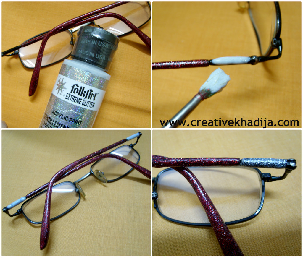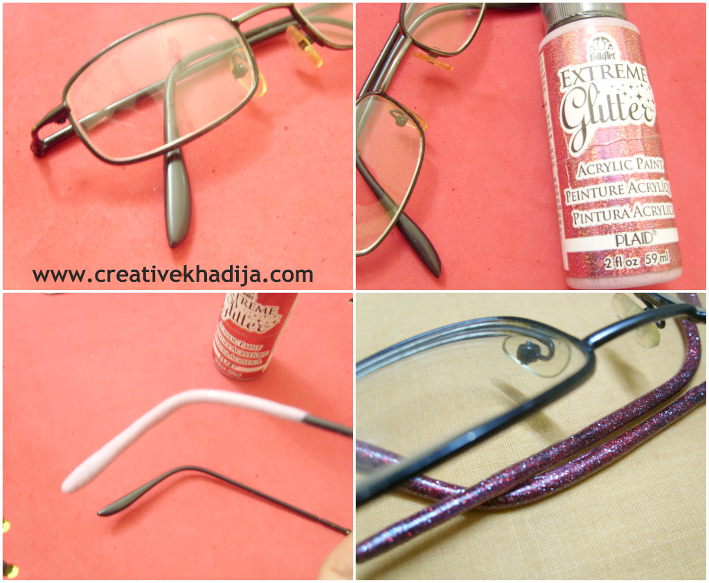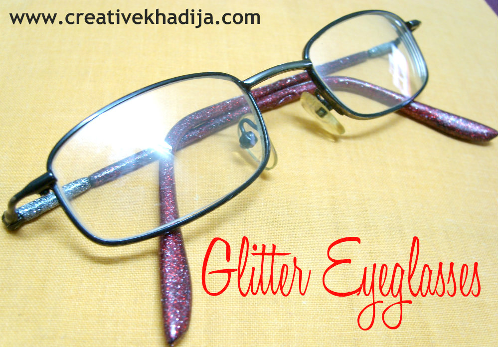 I like Glitter & shine stuff extraordinary, & the reason is obvious..meaning of my name “Kiran” is Shine/shimmer & sparkle.. So I am mostly inspired by these things.. well most of my friends are already familiar with this fact that I am wearing eye glasses, I have one framed & the other is frame-less & very intricate eyeglasses. This framed one is not in use these days, so I thought to do any sparkly experiment with this one..So here I tried something..have a look..
