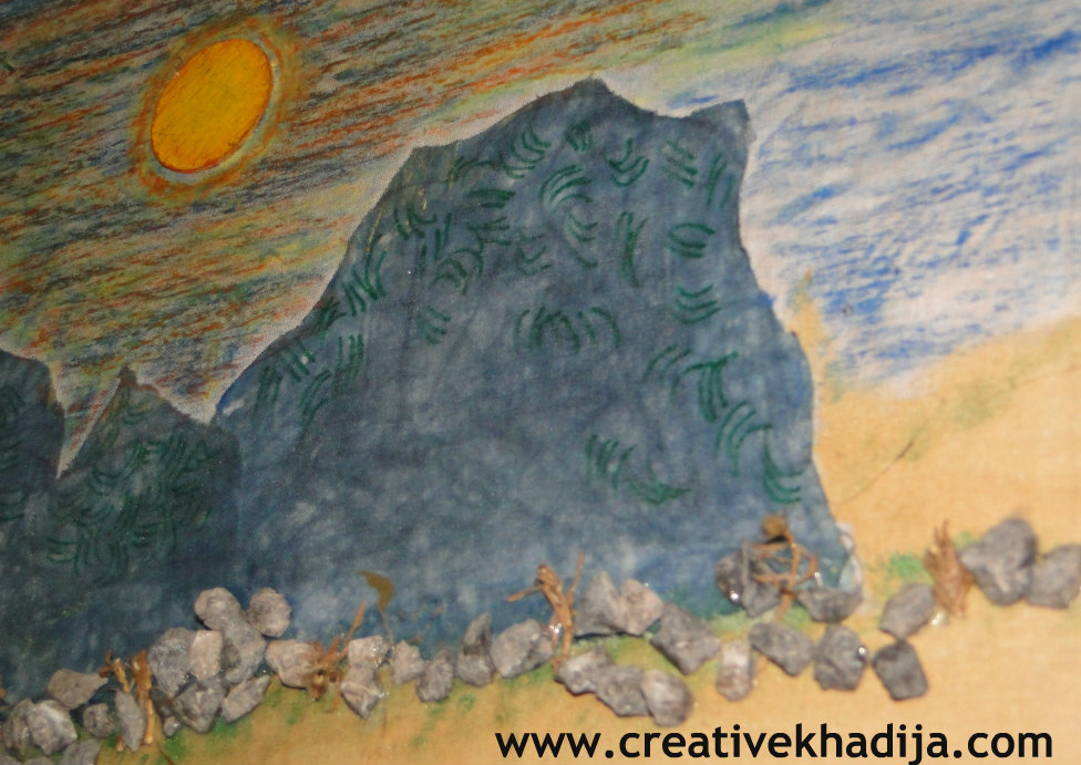 Hills with batik technique..and some original small stone pieces.