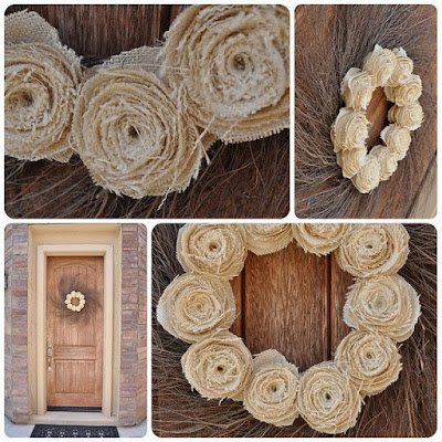 Cute burlap rose wreath for the front door. A perfect fall decorating.