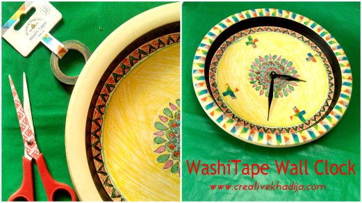 I am very clever, Instead of hanging this wall clock in the kitchen, I hold it in my room. I hang another simple black wall clock in the kitchen & fixed this one on my craftroom wall. As I decorate it in my craftroom, So better I should hang it here. Haha! I hope you will enjoy this idea. Many of us already have plain wall clocks, So let’s try something easy with washi tape any day!