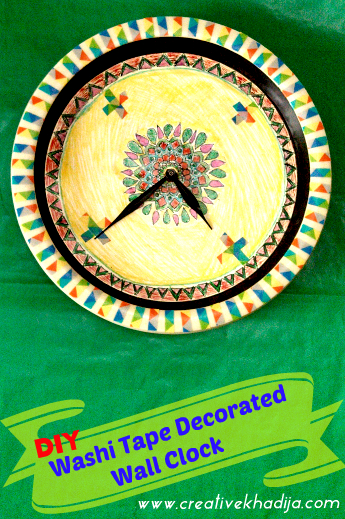 One day while dusting the surface of kitchen cabinets, Suddenly I hit the wall clock & in a moment it was on the floor with it’s glass broken totally. Luckily its machinery was working well. So instead of feeling sad, I were smiling. Haha! You know what? The designed glass of the mirror is broken. All I had is a plain clock in light green/off white color. So it’s time to redesign. Yay! Another project to start working on. Have a look how I have done it with Washi Tape and some freehand doodles.