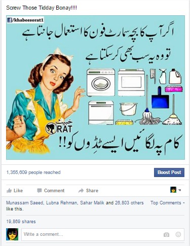Admin Khabees Orat Reply: I loved this one. I laughed a lot after making it. And I try not to post shit stuff even if the page reach is down. So it never happens that I shared something jo mjhe khud he achi nae lagi.
