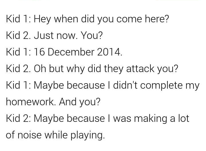 Pakistan want peace. We are a peaceful nation, We condemn terrorists attacks everywhere in the world. Why some cowardice people are trying to ruin the peace by killing innocent kids? The blast was just outside the exit gate and a few feet (meters) away from the children’s swings. Who bloody can dare to make a playing kid showering with blood in a moment? I am speechless!