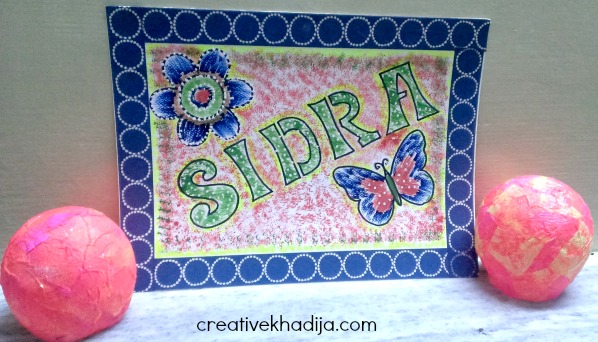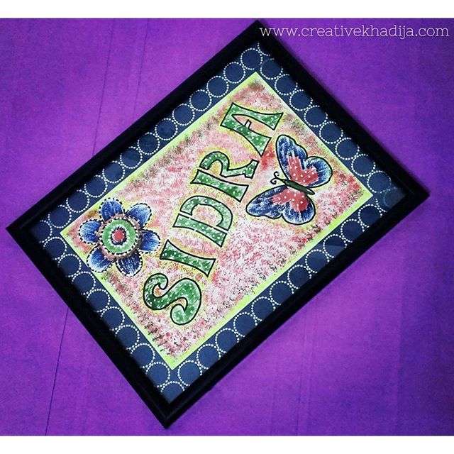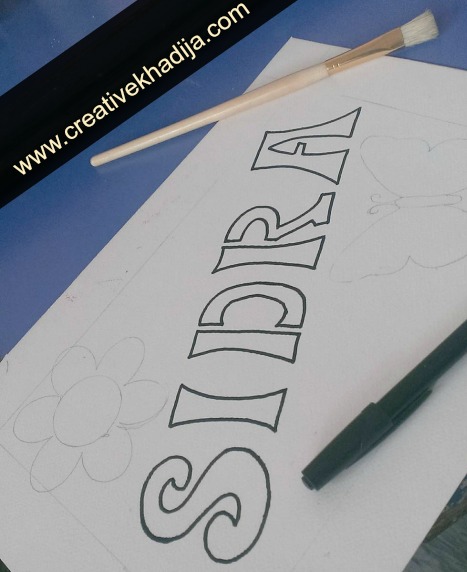 I draw Sidra name on the sheet along with a flower & a butterfly. I keep some border at sides as well.