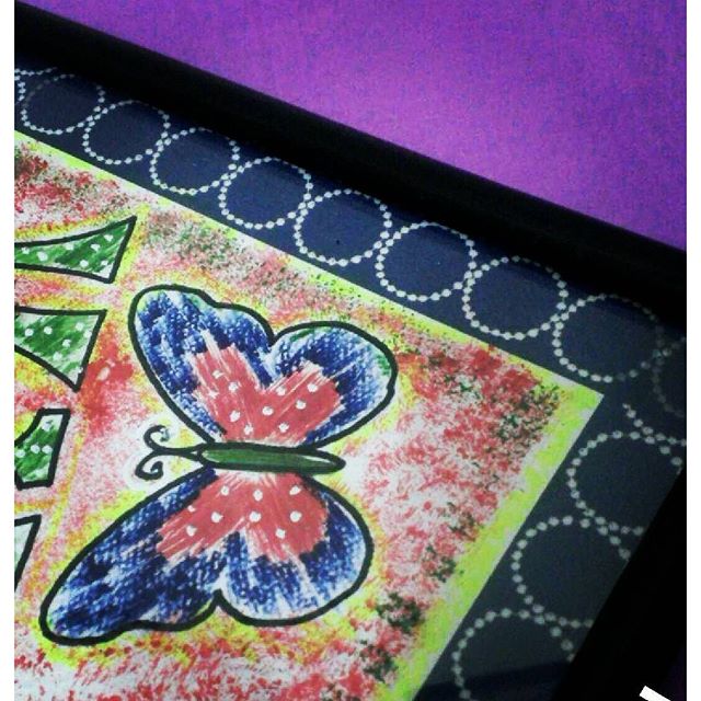 I fill truck art inspired colors in the painting, I used Red, Blue, Green, Yellow & a little white dots as well. Black marker was for outline basically.