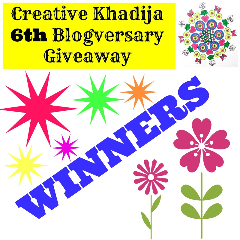 Hello Hello.. I am excited today for my 6th Blogversary Giveaway Winners Announcement. First of all I would like to say a BIG THANKS to everyone who visited & entered my blog post, Thanks For your sweet comments, Emails & wishing me from all over the world at this achievement. These 6 years are filled with so much fun, experiments & success! I don’t mind sharing during this journey I failed too but I never give up! So here I am. All this venture was not possible if my wonderful reader, fans & followers And specially my Family members were not supporting! I am glad everyone is a helping hand & I got courage to do whatever I want to experiment with my art, blog and online business.