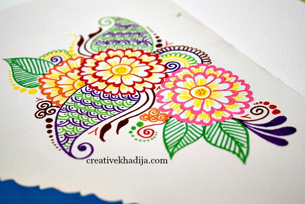 I made some colorful henna tattoo drawing & design on a card with colorful brush markers, That turned out so well.
