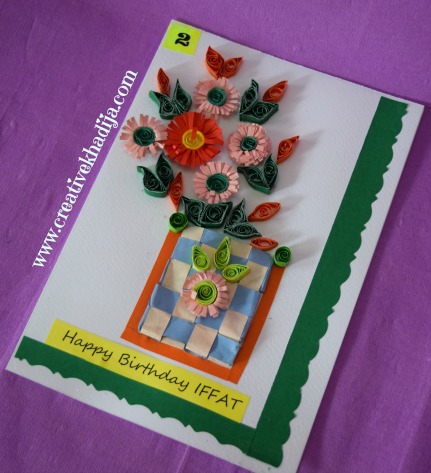 In my previous post I share some colorful handmade cards for Eid & birthdays. Today I am again going to share some more handmade cards making ideas. Here are some easy & beautiful handmade paper quilling cards making ideas. I am sure you will like these handmade quilling cards designed by Creative Khadija.