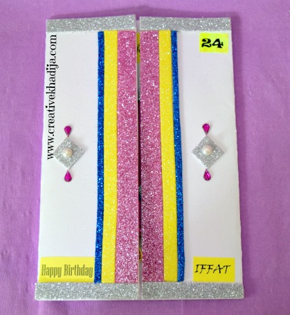 One of my favorite card. Here I used colorful glitter foamic strips here as well as pastes some drop shape rhinestones.