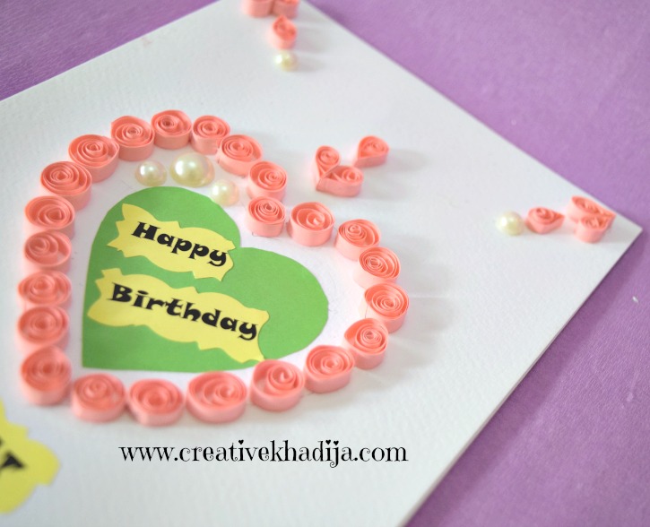 What about this heart shaped paper quilling card? This birthday card is simple & easy to make! give it a try!
