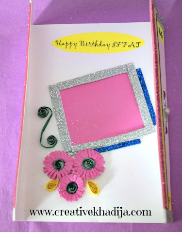 Inside this handmade card, I pasted some paper quilled flowers & space for putting a photo inside.