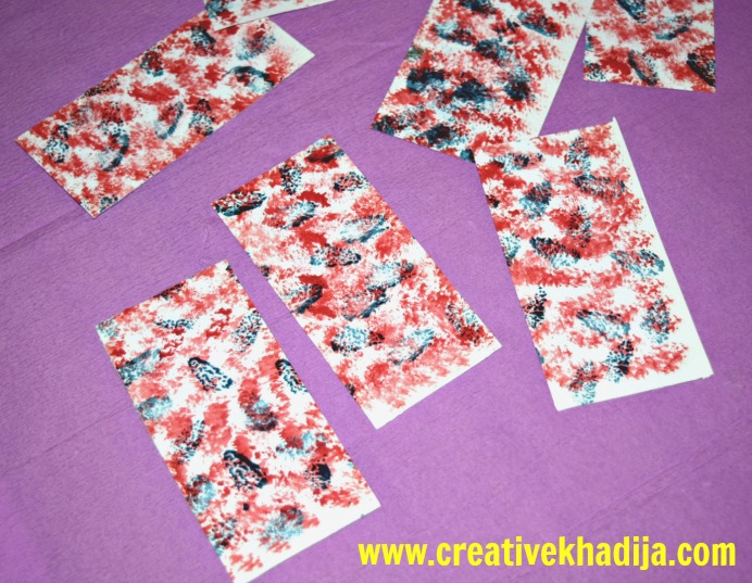 First I started cleaning my paint brushes but later when I saw the result is not bad,  I tried dipping brushes again in the paint bottle for making these fun textured cards! Simply give rough strokes of the paint brushes. Fill the sketchbook sheet with rough strokes & then start cutting it with a simple scissor or a zigzag one! There are some fun possibilities as well.