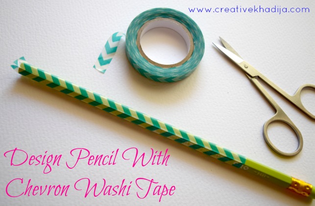 As I choose chevron design tape for pasting on the pencil, So I cut three strips of the same size washi tape which covers the 3rd half of the pencil & left one part for silver tape.