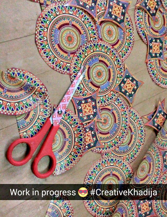 I measure the shelf space where I was going to paste the sheet. Then I cut some circle motifs from the sheet accordingly. Cutting takes hardly 10 minutes & in 5 more minutes pasting was done. This is just 15 minutes project & super easy too. All you need to do is CUT & PASTE. That’s it.