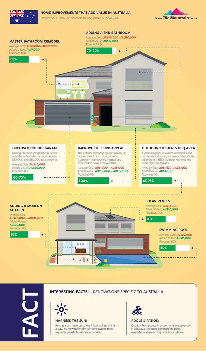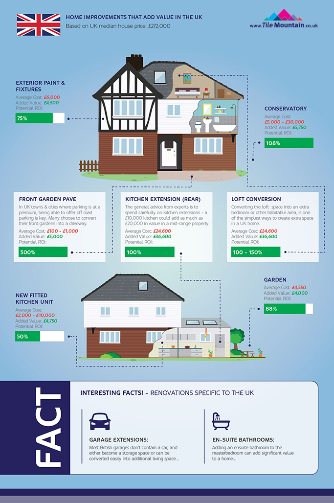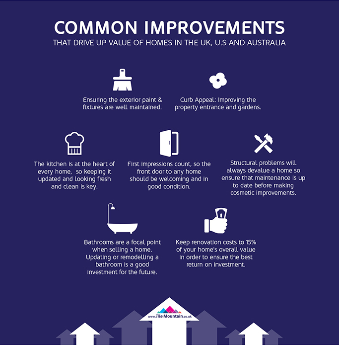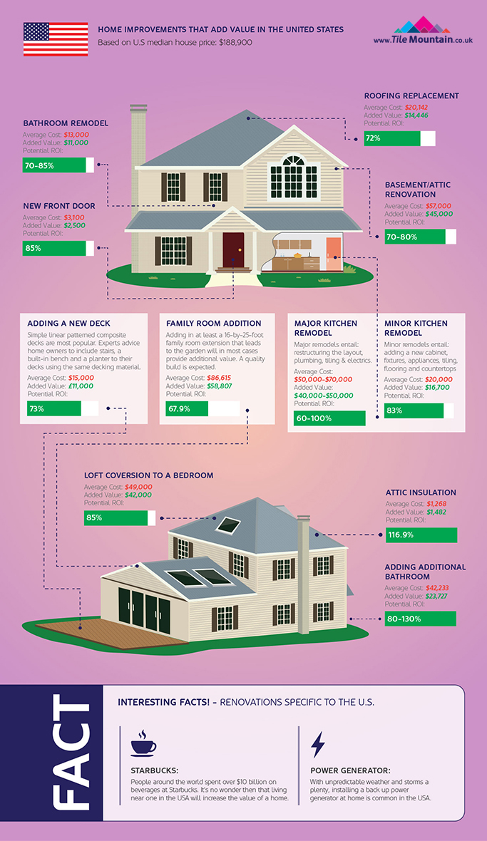 If you love maintaining your space nicely, You will definitely know the importance of a properly designed place. There are several factors which can be helpful in improving the value of your home or office. If you will keep the basic & general things in mind while planning for house making or constructing, Then you will see how useful it will be in future whenever you are going to move somewhere else or thinking about selling the space. Today I am going to share a useful infografic through which you will get to know what are the general things about adding value to your homes & can improve the lifestyle of residents. It’s about homes in USA, UK & Australia. Have a look what kind of improvements you can make to add value to your homes! I hope you will enjoy this infografic detail.