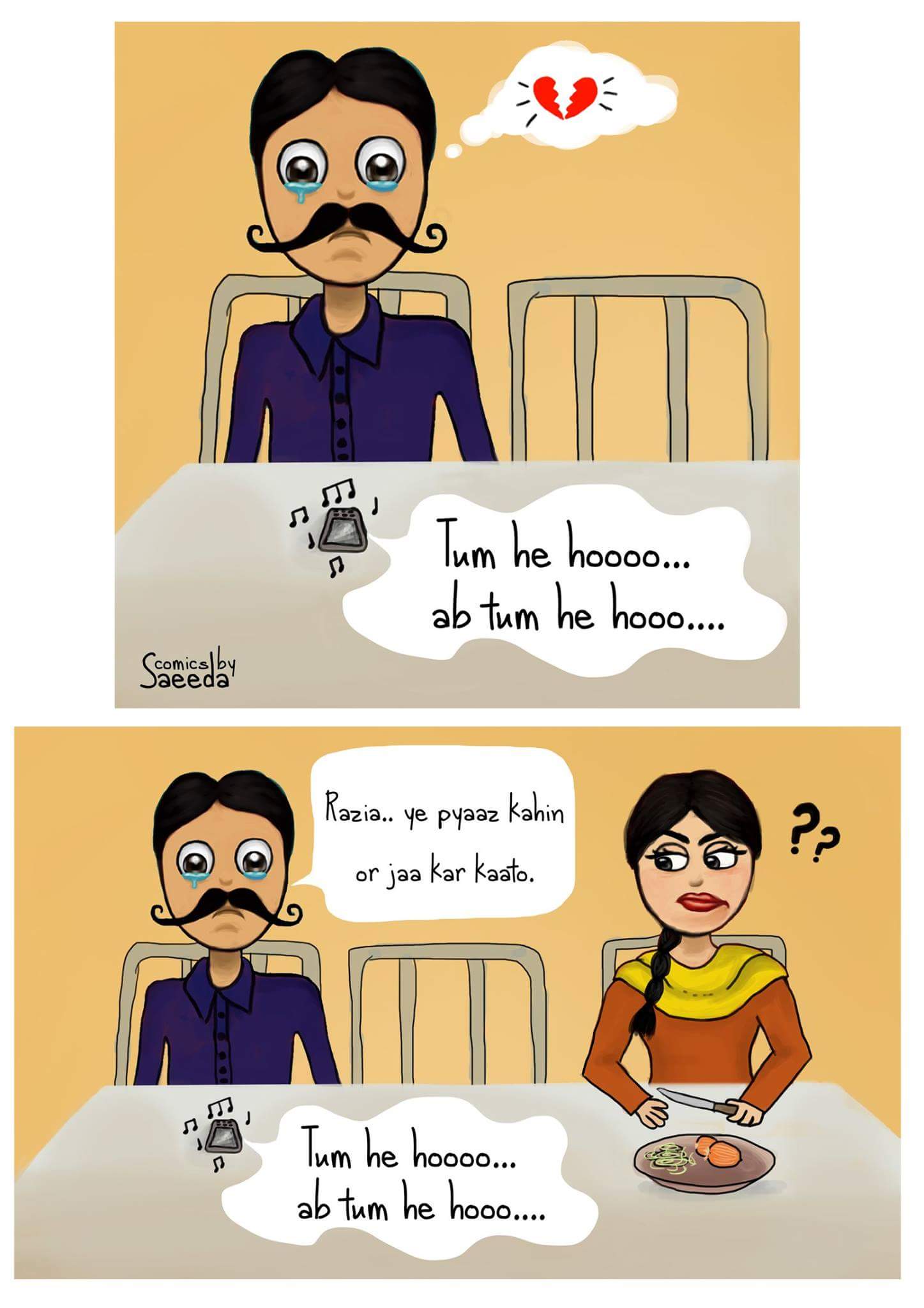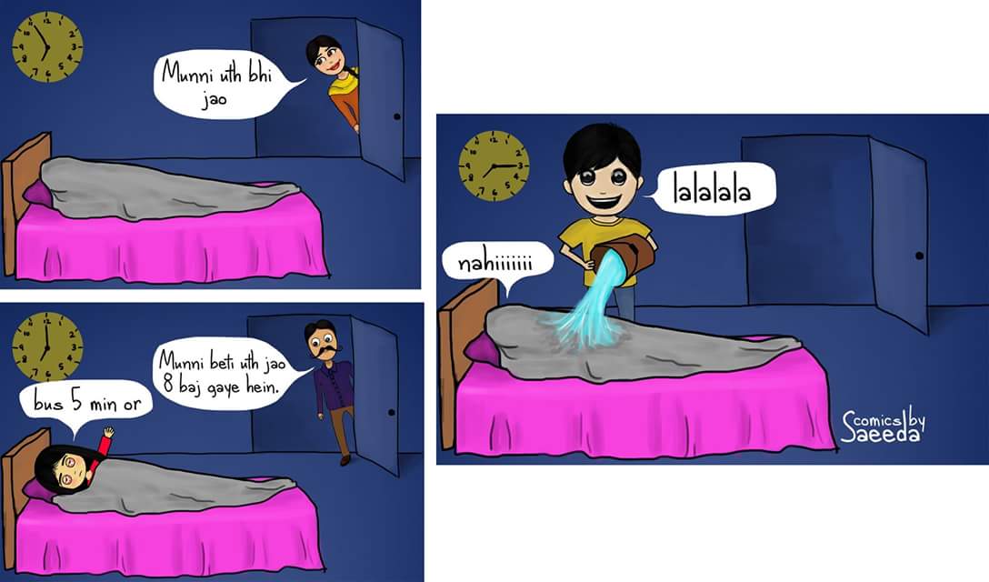 I will share a few of my comics about Desi family. I chose to have most of my characters to be desi because I think these days we are becoming modern day by day. We are always on our smart phones. So I think it’s good to remind the audience of our desi Pakistani culture and the funny situations which we used to, or still go through everyday.