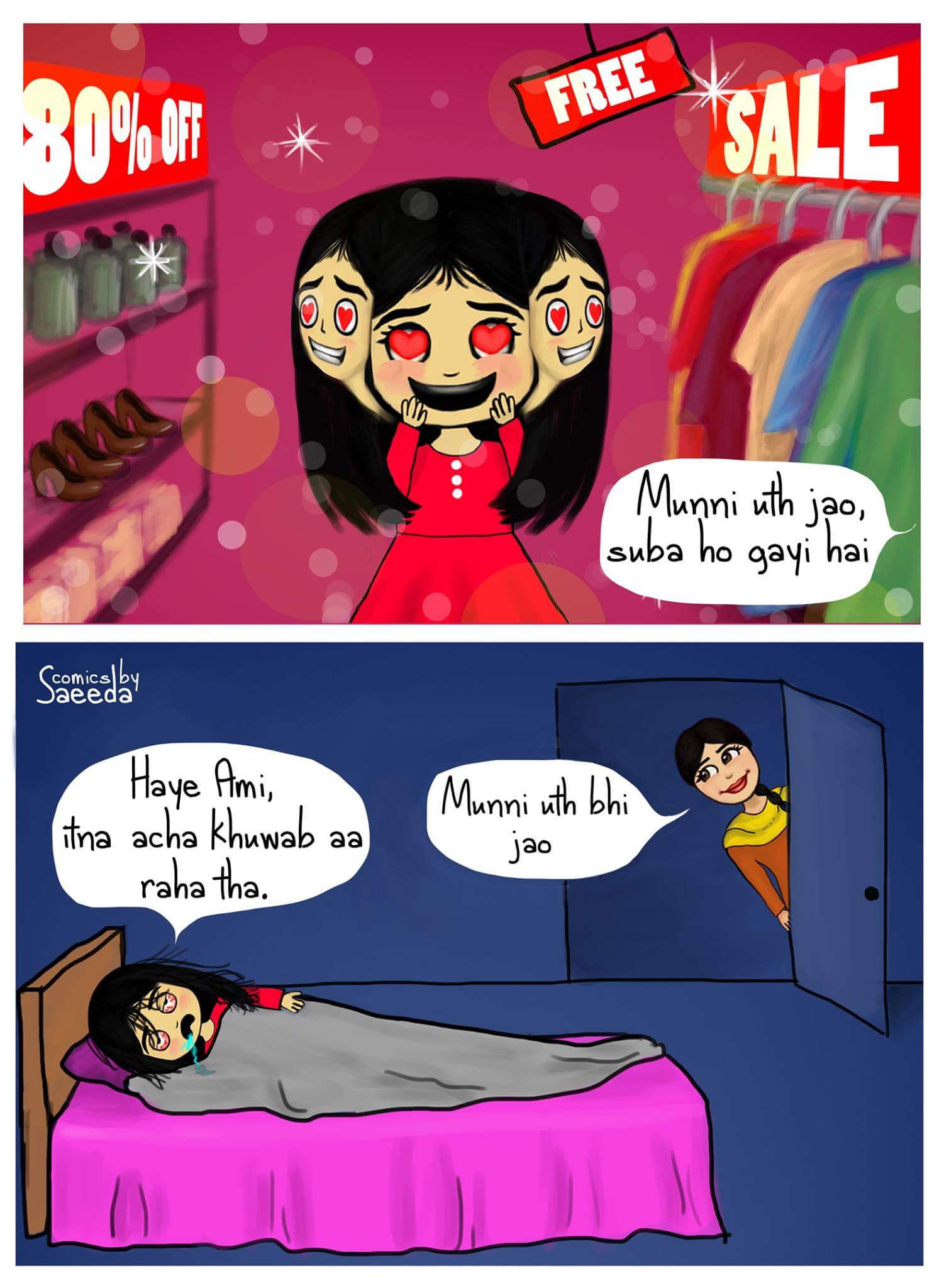 When you are having a good dream and someone wakes you up. Why? Munni usually does a lot of shopping in her dreams and then when she wakes up, she’s left with nothing. Oh it’s heartbreaking.