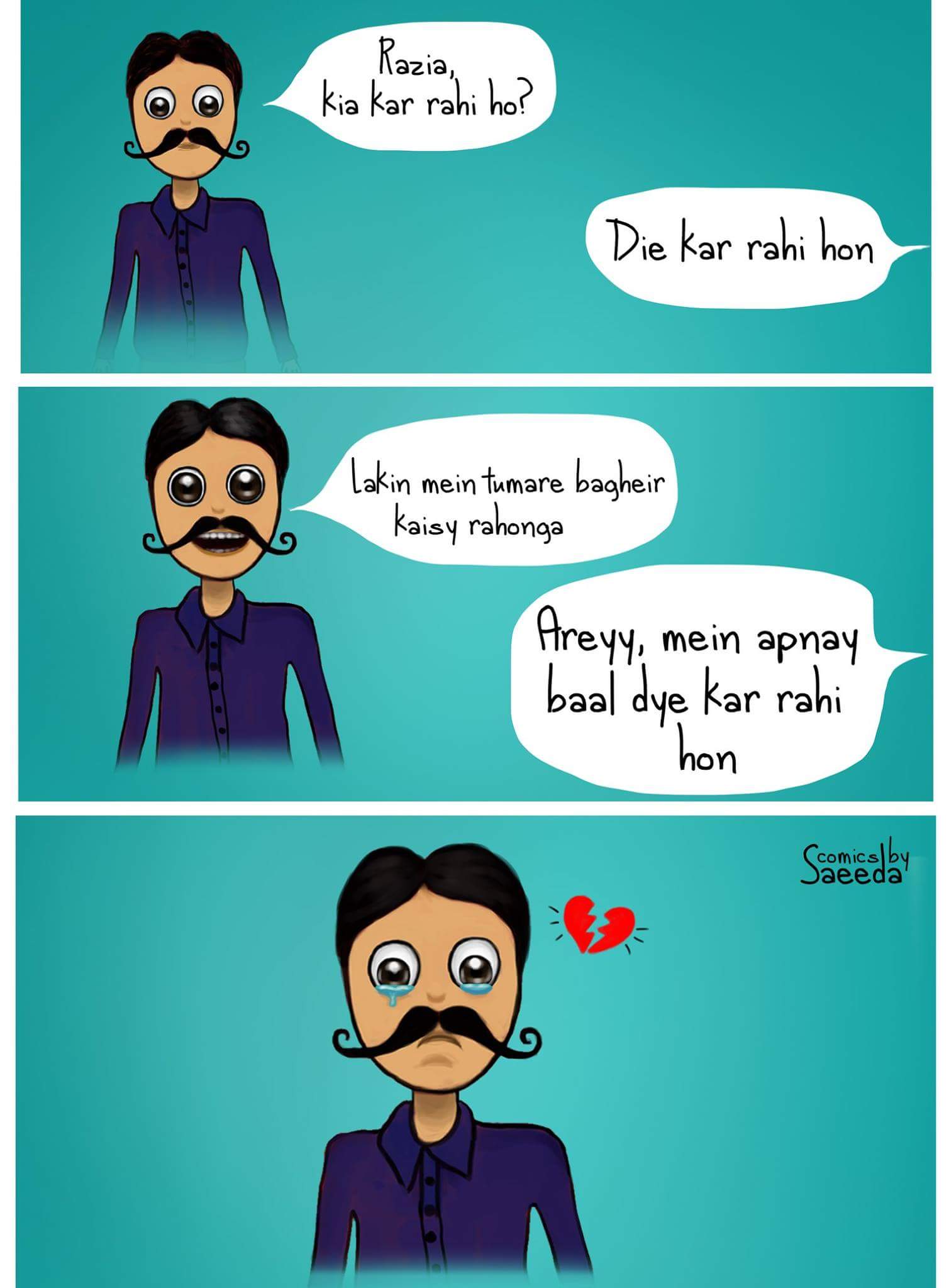 I am Saeeda Bibi, a Pakistani Artist based in Australia. I run a comics page called “Comics by Saeeda”. I had always been good in drawings, art and creative stuff. You might have seen my work already since a lot of Pakistani celebrities have shared their portraits which I made.
