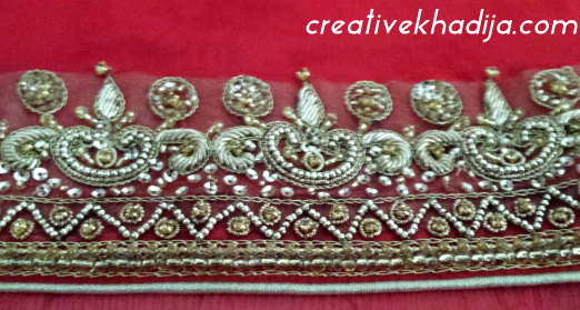 This is the border of the lehnga scarf. Embellished with beads, sequins, metal fillings and zarri/tilla thread.