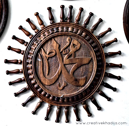 I click this beautiful wall art during my visit to Lok Virsa Islamabad. This is hand carving on wooden piece. The holy name of Prophet Muhammad (Peace be upon Him) carved on the round wall art.If you are following me on my social media networks, You might remember I have shared some images on my Facebook & Instagram about my visit. I will soon share a blog post about my visit to Lok Virsa. Wouyld you like to see some random updates?
