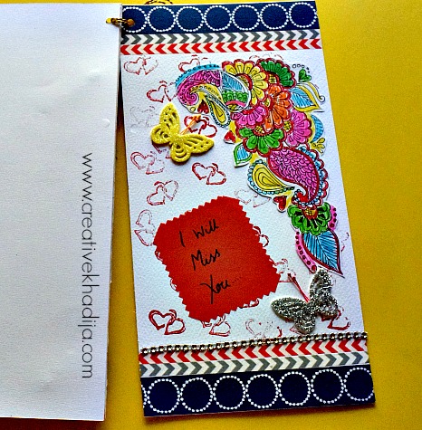 Last page of the card is so colorful, I design it with my hand doodle design & heart stamped base texture. I colored the doodle & it turned so fun! First I thought to keep it black & white but the colored version is good.