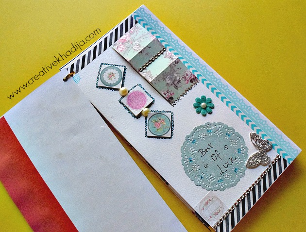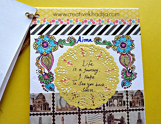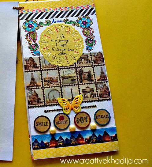 Have you ever designed a handmade card for your family or friend? I recently design this journal style mixed media card for one of my customer who’s best friend was going to Australia for higher studies last week. Her flight was in two days when I got this customized card making order by the client. I refuse her first as it was very limited time for me to create something properly but on her humble requests I have to make my mind for working on it.