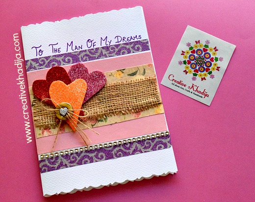 Pearl beads, Foamic heart stickers, Scrapbook paper cut out & I put all these on a round pink paper doily. This lace design doilies are my favorite these days for paper crafting & cards making. Aren’t these attractive?