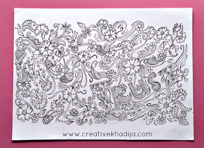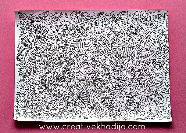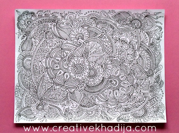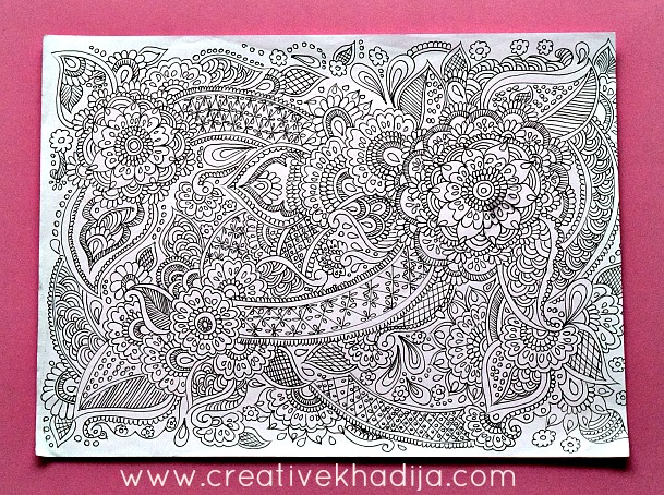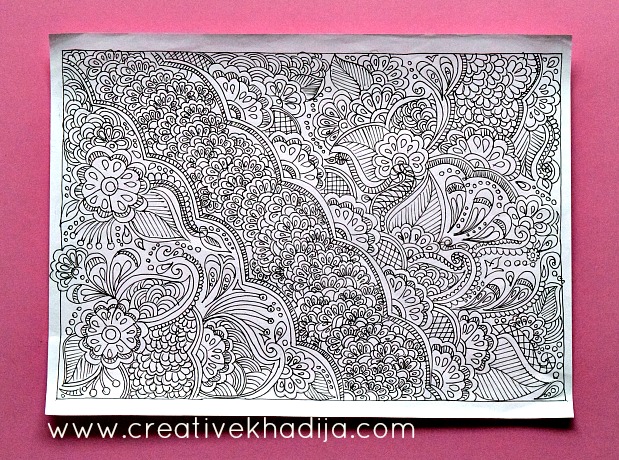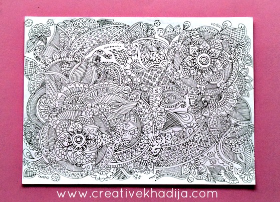 Just freehand floral lines & motifs. I don’t know what I am going to draw, Seriously I just draw & fill the page!