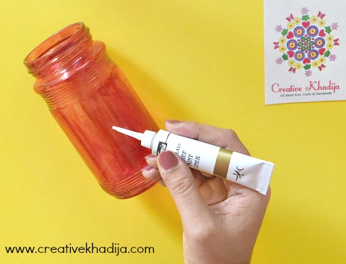 First you will apply a coat of glass paint on the glass jar & let it dry for almost half an hour.