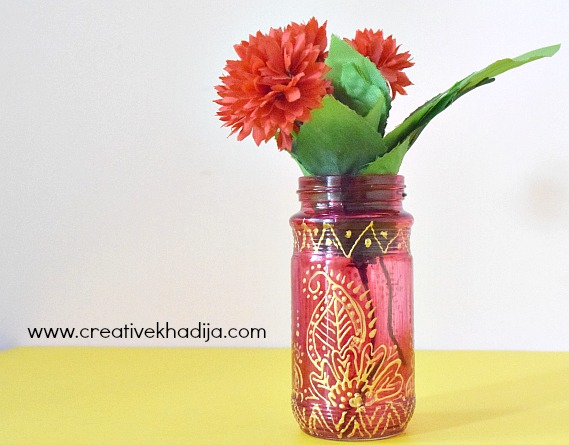 You can use your decorated jar as an organizer for your art supplies, markers, paint brushes or flowers to decorate your space! I am still not sure how I am going to place it in my craft studio shelves.