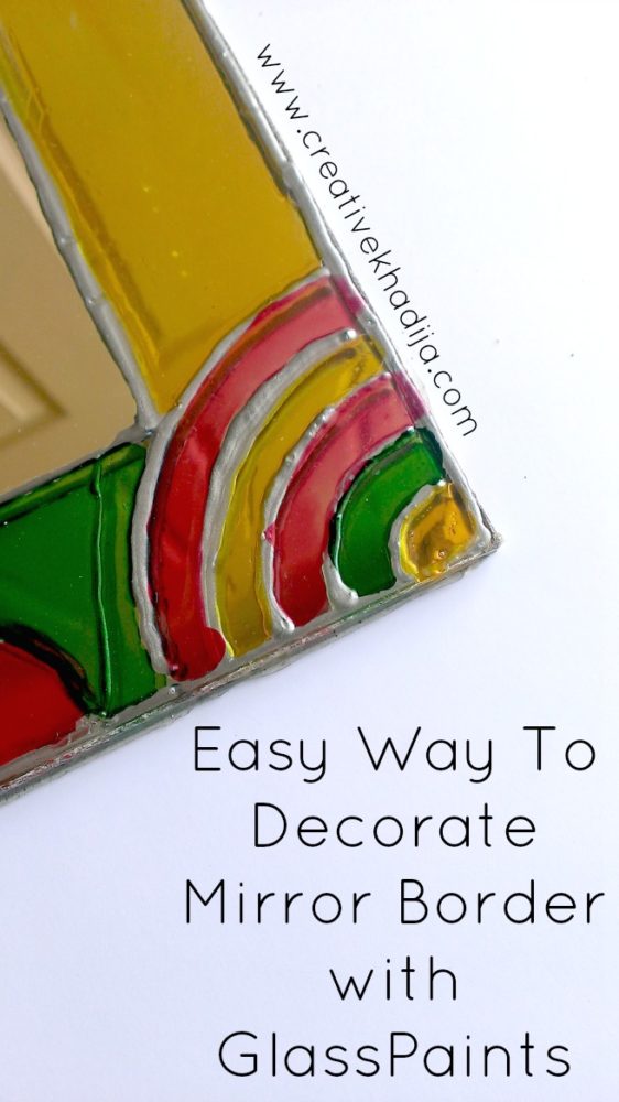 Spring/Summer season is going on in several parts of the world. Here In Pakistan, Summers are having a kick-start finally. I had a big looking mirror which I was suppose to hang somewhere in our lounge. I wanted to try something simple but minimal. So I ended up with this colorful idea. My glass paints after my Mason Jar decorating tutorial were going to dry so quick & I already wanted to use those somewhere.