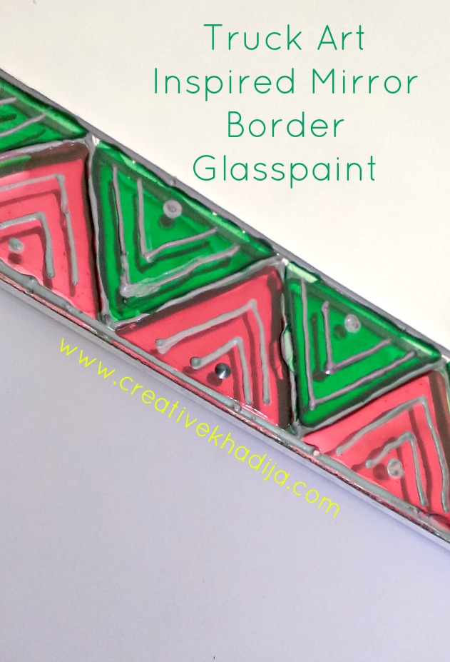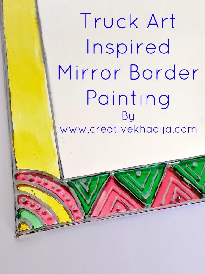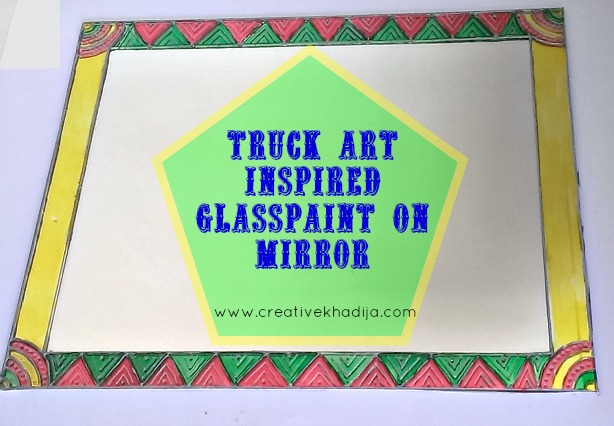 Pakistani Truck Art is one of the most colorful art which is visible here as paintings on heavy vehicles. Now truck art is going viral in other creative ways. Home decore, wall art decorations & textiles items like home accessories. Even now you can see truck art inspired clothing & shoes too. How interesting! Today I am going to share a truck art inspired glass paint on mirror.