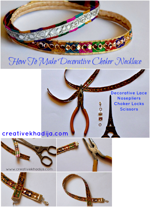 Choker necklace is one of the most fashionable accessory these days. Chokers look very trendy neck accessory. I am in a habit of collecting craft supplies, Whatever I find interesting & craft-able I get it for trying next. I bought some choker metal setting two months back once. Last week when I was shopping for some laces on a local store, I found these pretty decorative laces. Usually chokers are plain & simple but I thought to make some decorative chokers with this lace. So I bought it & now I am sharing a quick tutorial how you can make a choker in two easy steps. Along with my tutorial, I am sharing some creative collections of 23 easy tutorials on How To Make Choker Necklace. I hope you will like today’s blog post. Let’s see