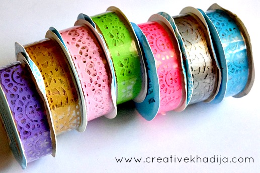 In most of my paper craft project, I like to use adhesive tapes to spice up my craft borders. I found this sticky lace tape very interesting. It’s 3D look & beautiful designs are very fine!