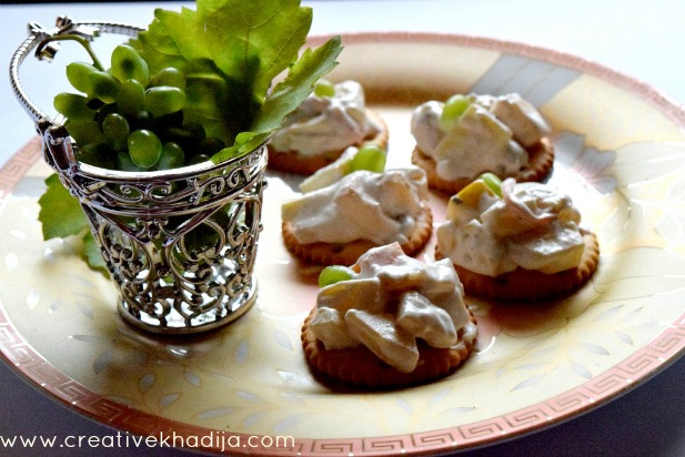For cream salad, Try cutting small sized fruit chunks otherwise they will drop down from the crackers. These grapes are actually home grown & they were not yet ready to reap when I was working on this photography project. As I need these for my photography so just get these in. Aren’t they looking good?