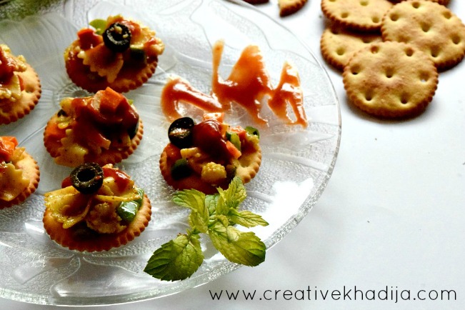 Let’s eat macaronis in a different way! No need to have spoon or forks! Put your macaronis on crackers & set it in iftar platter. If you feel like they will drop down & will be slipping from biscuits, Make sure to spread some ketchup base on cracker first. Is there anyone who is looking for macaroni recipe? It’s simple vegetable macaroni.