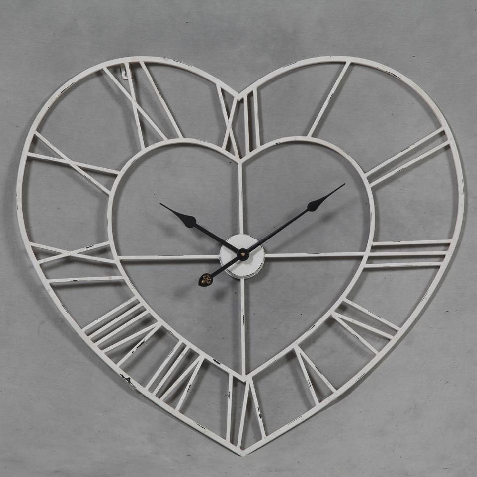 ANTIQUED CREAM HEART SHAPED SKELETON CLOCK