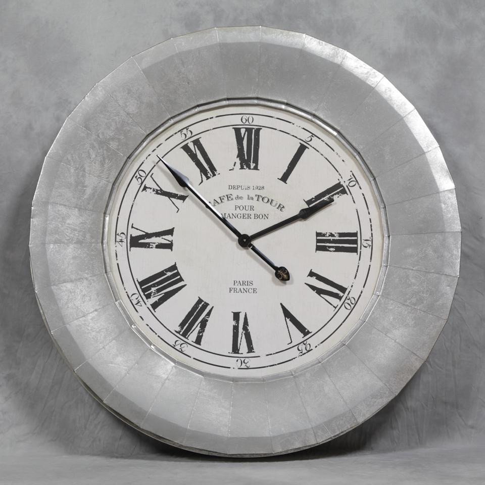 LARGE SILVER AND WHITE CAFE DE LA TOUR METAL CLOCK