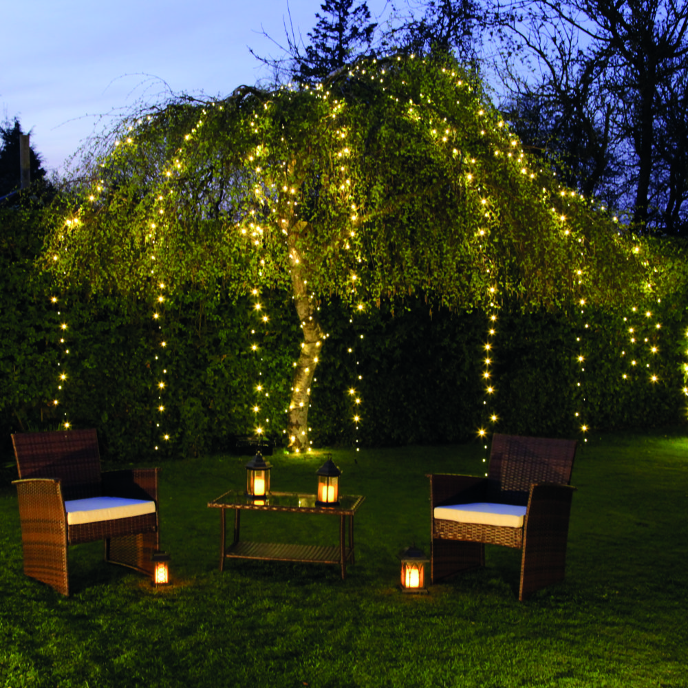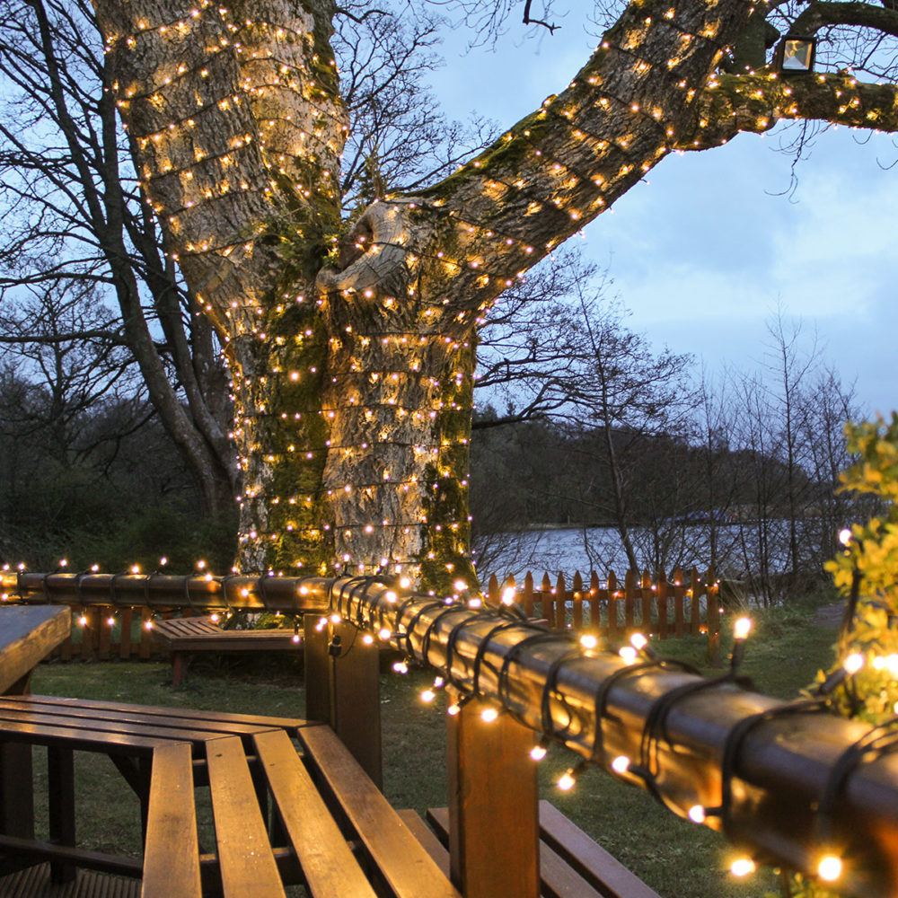 Fairy lights can easily make a magical atmosphere with their beauty! I adore these fairy light decorations in the garden. You can hang or wrap these fairy lights around trees or plants in your garden. There are some solar fairy lights also available at Festive Lights which can help you decorating your garden in a creative way!