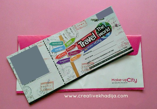 Hello beautiful girls, I hope you are having a great day. Recently I got a chance to buy some make up products from Make Up City shop. Recently I got a surprise actually. I got a postal mail in which I receive an entry ticket with a serial number on it. I am now part of a lucky draw via this entry ticket to travel the world. How exciting is this? I can’t wait for the withdraw to happen in coming weeks!