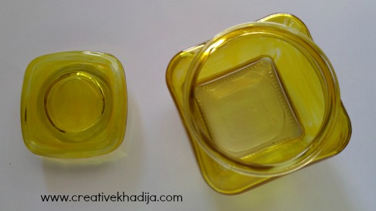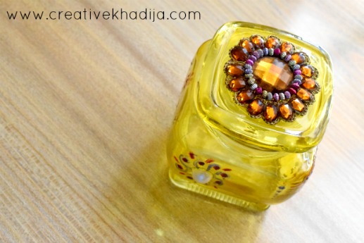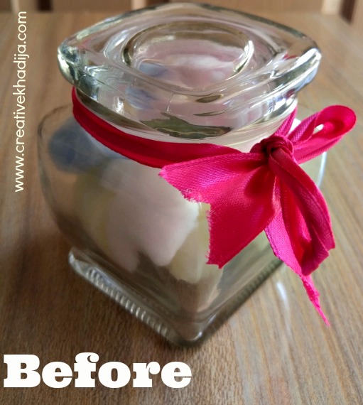 As it’s an air tight jar & opens with a little effort, That’s why I haven’t applied any decorative stuff on the jar much. I also put the pink ribbon back on the jar because the bow is so cute & I don’t want to waste it. it looks well with yellow color as well.
