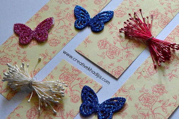 All you need to do is, Cut some paper strips or shapes as you like. Cut out a foamic glitter sheet butterfly & paste. I’ve used some beads embellishment which usually used in jewelry making. Cut it & paste. Punch the paper & make a hole to knot any ribbon or thread. Easy peasy in two minutes, It’s done.