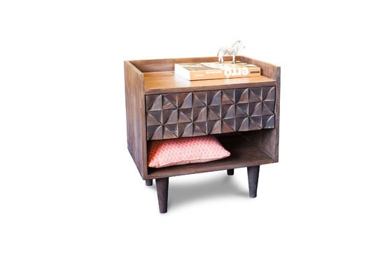 People who love antiques & vintage will definitely enjoy love this dark wood side table. Isn’t it attractive? The drawers with geometric style of design is really different yet unique.