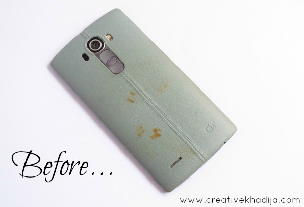 You know what, These spots on my phone leather casing are now permanent. Huh.. Sad! On Eid when I was having my Henna/Mehndi on hands done, I tried to click my henna pics for sharing on the social media & blog. After clicking pics, I saw these henna marks on it but they are now permanent. As it was a day before Eid, I was unable to buy a new casing as well. So an idea clicked in my mind next.