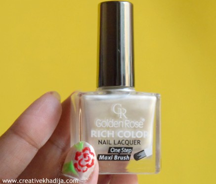 Golden Rose rich colour nail lacquer is with a maxi brush which helps to apply nail colour on the nail very easily & perfectly. For this red flower nail art, I’ve used Stageline cosmetics nail colour.