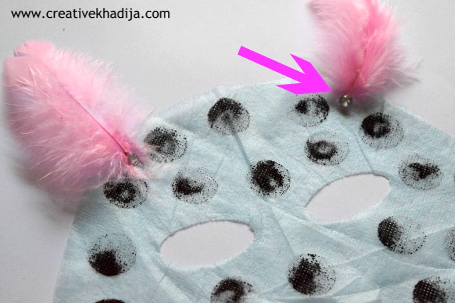 Here I am going to make the masks some fancy with a touch of feather horns. As the mask sheet is soft, so better something soft & lightweight should be applied on it. Use any transparent glue to fix a horn.