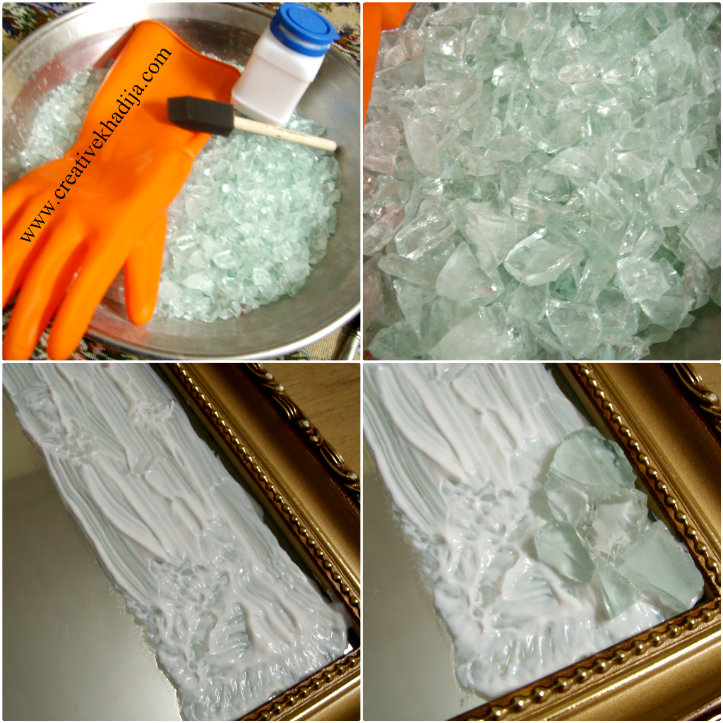 In the first step, we will break some glass pieces into small chunks. With the help of a hammer. You don’t need to break it hard, just a little hit will be enough. Wrap a piece of mirror/glass in several folds of brown paper sheets. Keep kids away while breaking it. Be sure to wear rubber gloves, so your hands will remain safe from glass scratches. Then slowly hit the mirror piece with a hammer & collect desirable sizes of glass pieces. Be sure to dump the very small pieces in the garbage carefully. Wrap those crushed waste pieces in paper & any plastic bag then throw them in the garbage box.