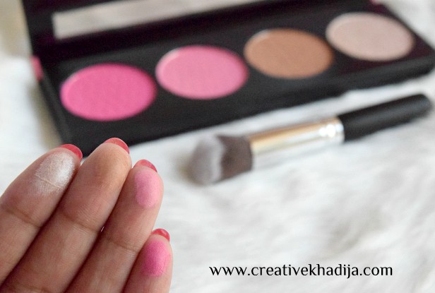 Here is a swatch for all four shades. This bronzer did nice contoure as well. I especially loved this highlighter.