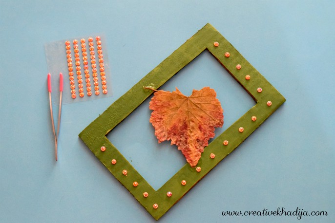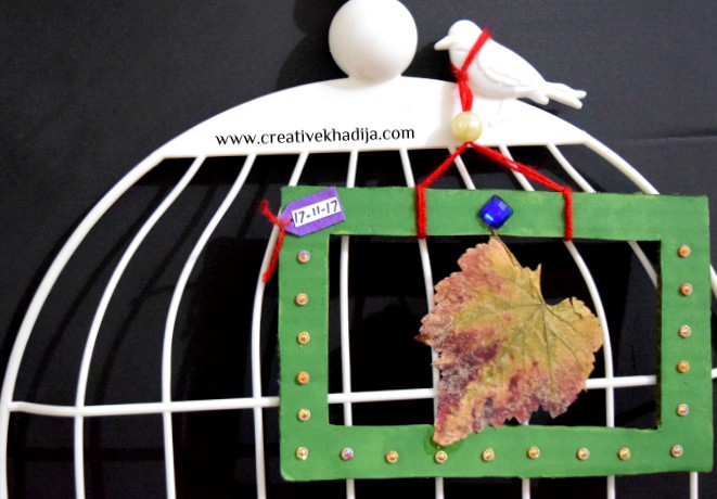 Ignore my scary thumb though, look at the leaf and its beautiful shades and colors. How nice and attractive it looks. So I thought to save it after clicking outdoor, I save it in a book carefully. After a couple of days, I saw it dry while the book page was looking at rusty paper because of humidity. After few weeks, this idea came into my mind about saving this leaf in some creative way! Today you will see the tutorial on this idea. See what you will need to have for making this tiny wall art.