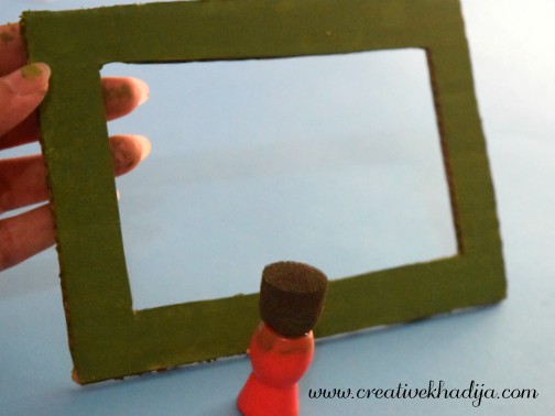 First of all, with the help of a sharp paper cutter, I cut a thick card sheet (which is used for packing usually) in a frame shape.